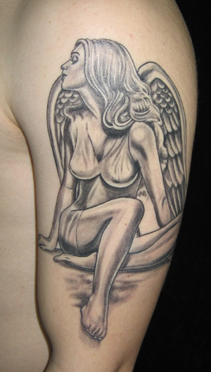 Sometimes, an angel tattoo design is bounded by other signs in order to denote a particular story or image. The meaning of such a tattos will depend on what each different design reflects. Every element will have its own special meaning to the single and the whole design overall will create a certain image that’s both personal and unique to the person with the tattos. Angel tattoos are very spiritual and symbolic. They are important in many religions, such as the Christian, Jewish and Islamic faiths. They are believed to be messengers of god, and protective, such as guardian angels.